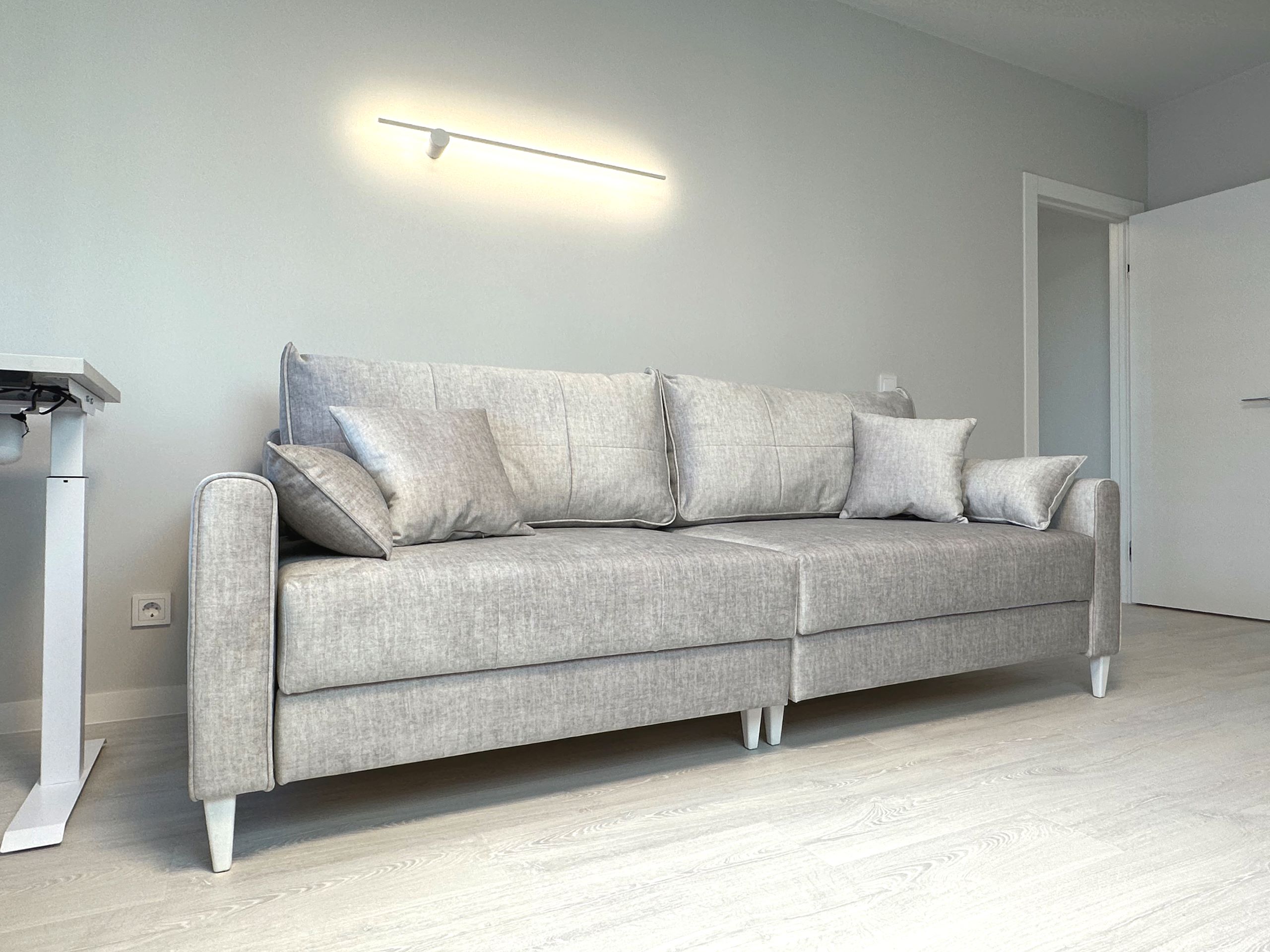 Диван-кровать Альсей отличное сочетание практичности и комфорта. Его можно использовать как диван для отдыха, так и быстро организовать дополнительные спальные места. Микровелюр бежевого цвета придает ему стильный и современный вид.