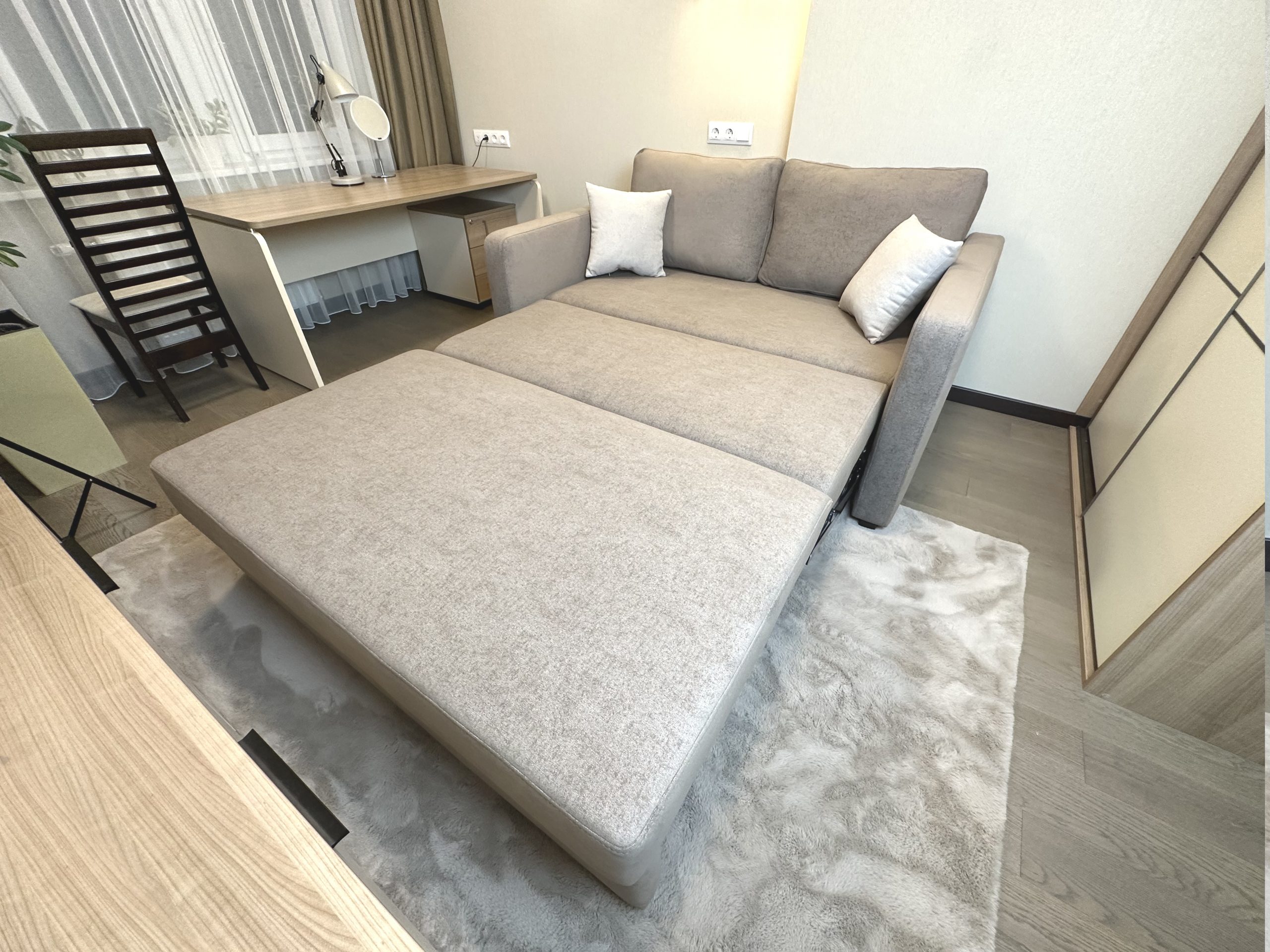 В диване установлен механизм трансформации Пума, который быстро и легко превращает его из дивана в комфортную кровать и наоборот. Конструкция дивана-кровати Эльф также оборудована повышенными подлокотниками, которые гарантируют дополнительный комфорт во время использования.