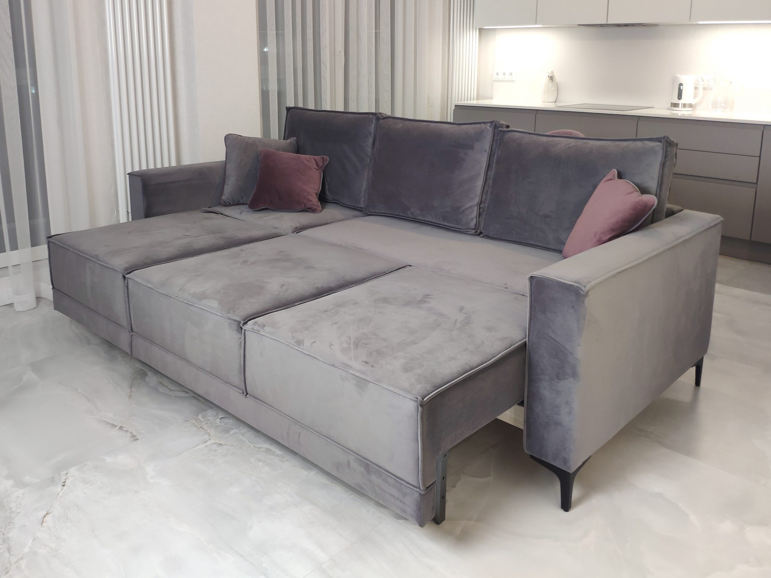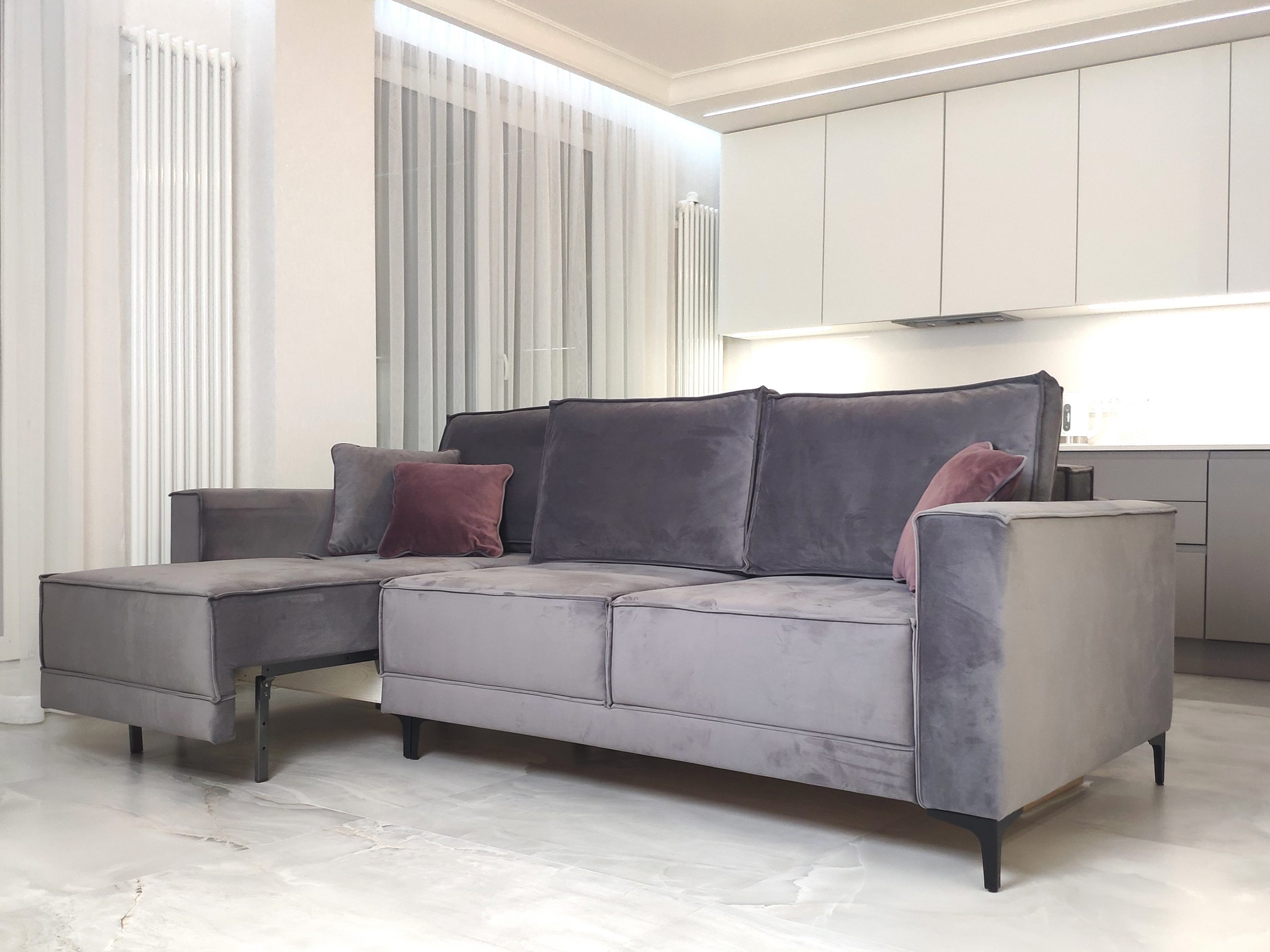 Диван-кровать Этран прямой в сером цвете из микровелюра — это идеальное сочетание роскоши, комфорта и функциональности для вашего дома.