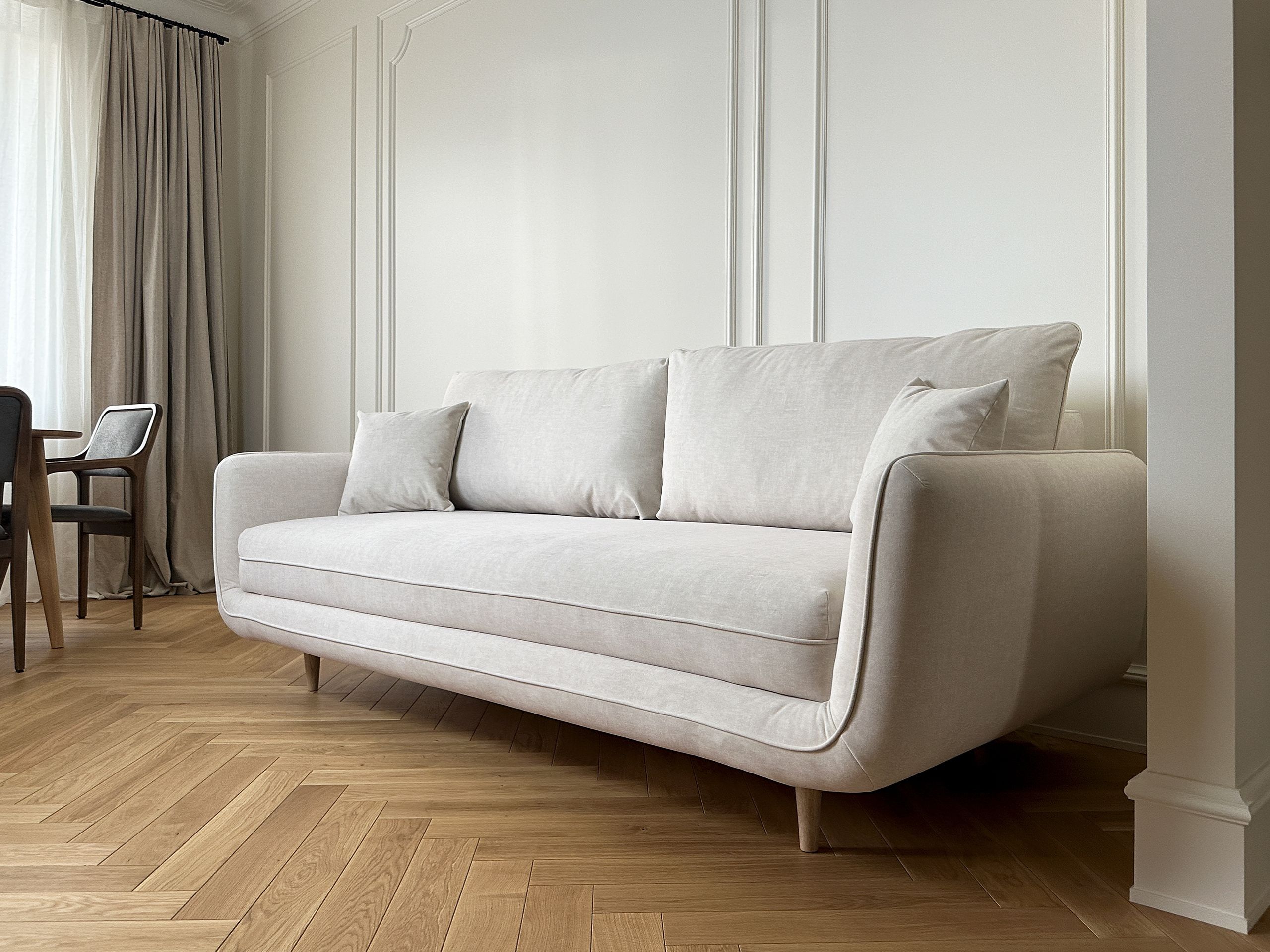 Диван-кровать Линдисей – это современные линии, удобное наполнение, наличие спального места – все это про Линдисей. Диван прекрасно подойдет для комфортного отдыха и гостевого сна. Линии подлокотником создают ощущение бесконечных объятий. Прекрасный вариант как для интерьера в скандинавском стиле, так и для современного. Своей ненавязчивостью Линдисей дополнит и, конечно же, украсит ваш интерьер.