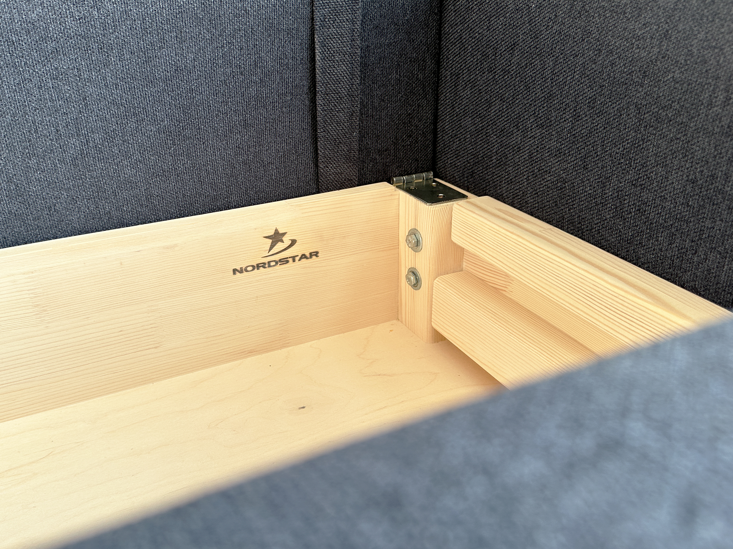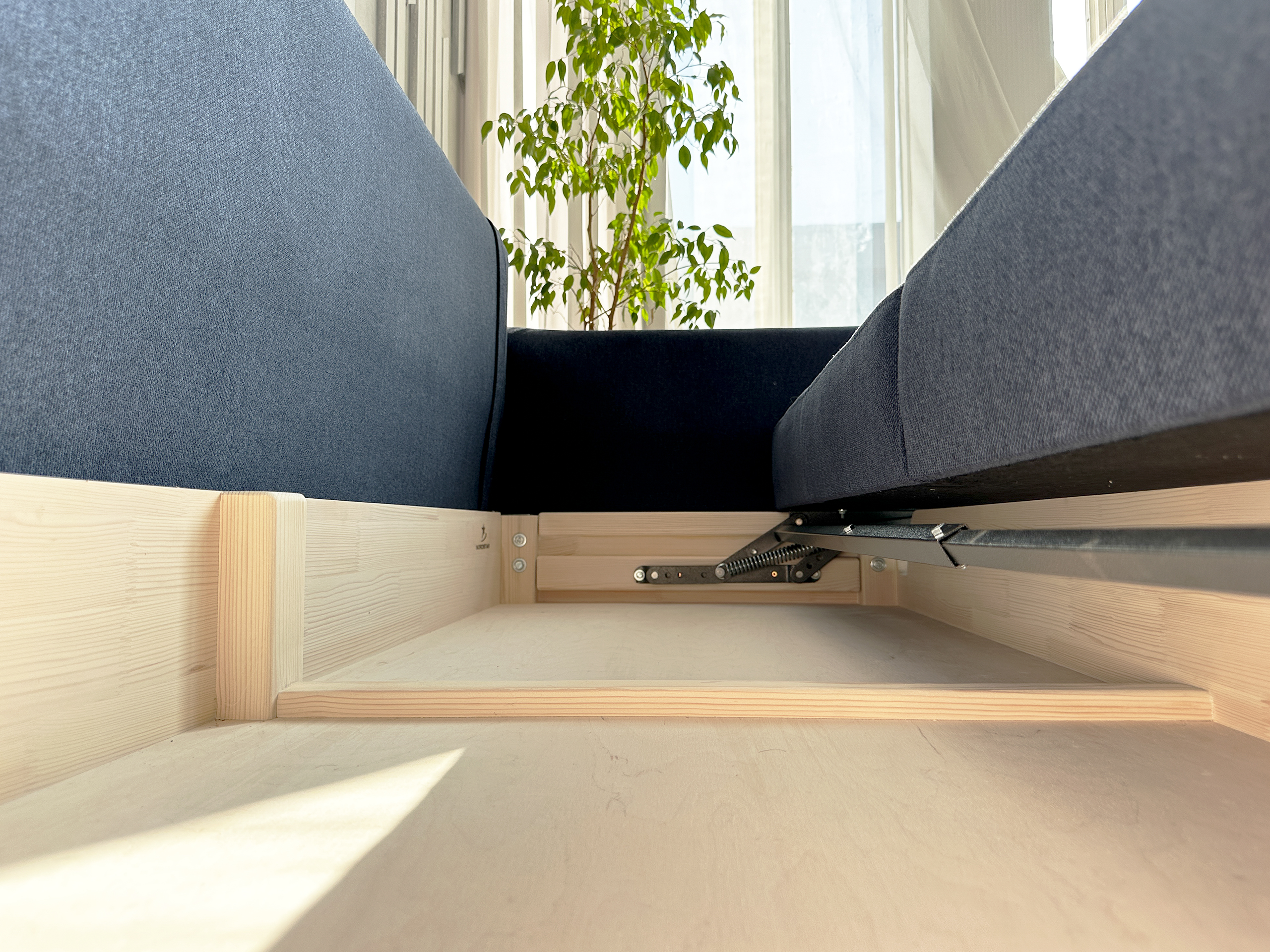 В Токко вместительная бельевая ниша. Это дополнительное место хранения. Поверхность гладко отшлифована и пропитана пропиткой. Ваше постельное белье под надежной защитой.
