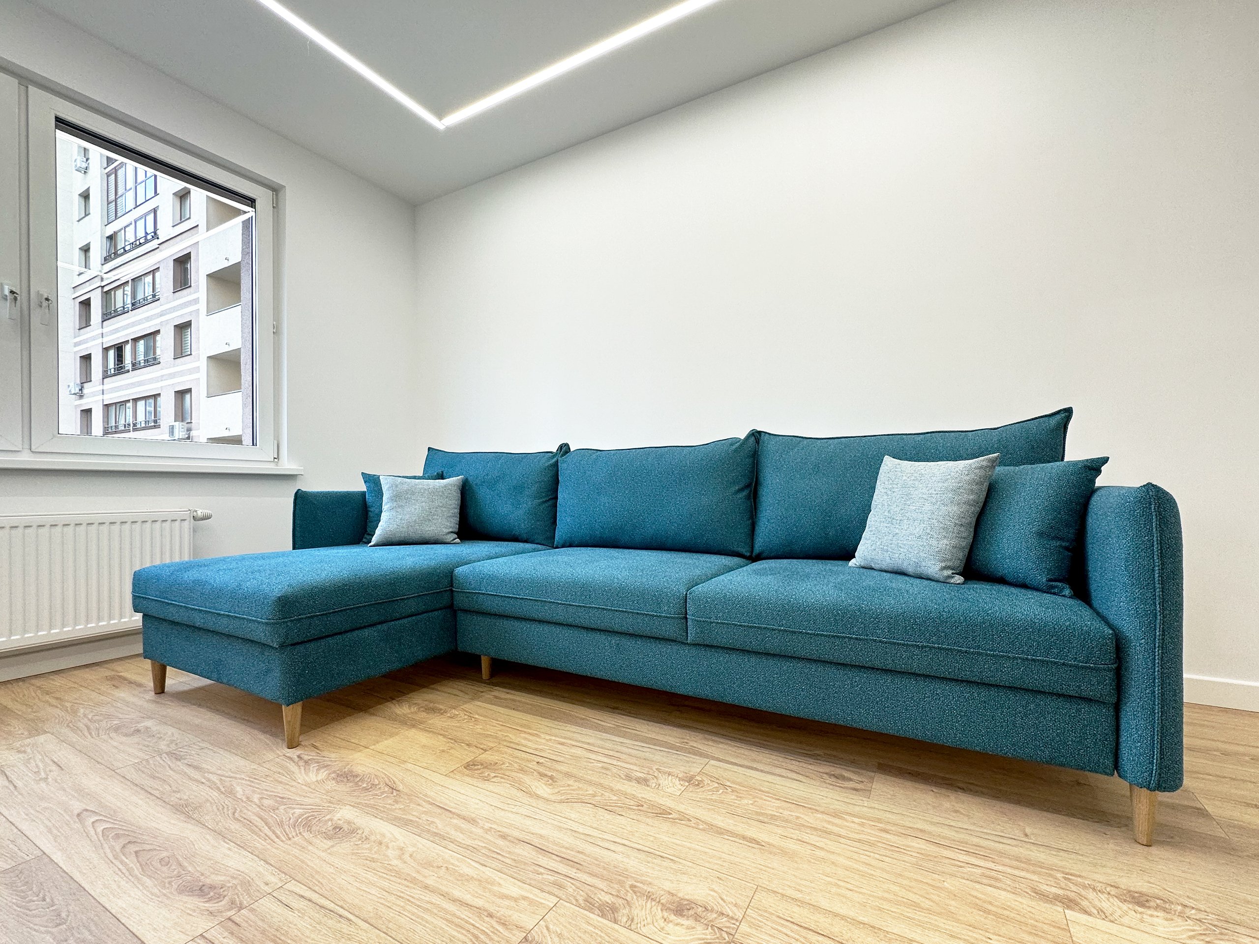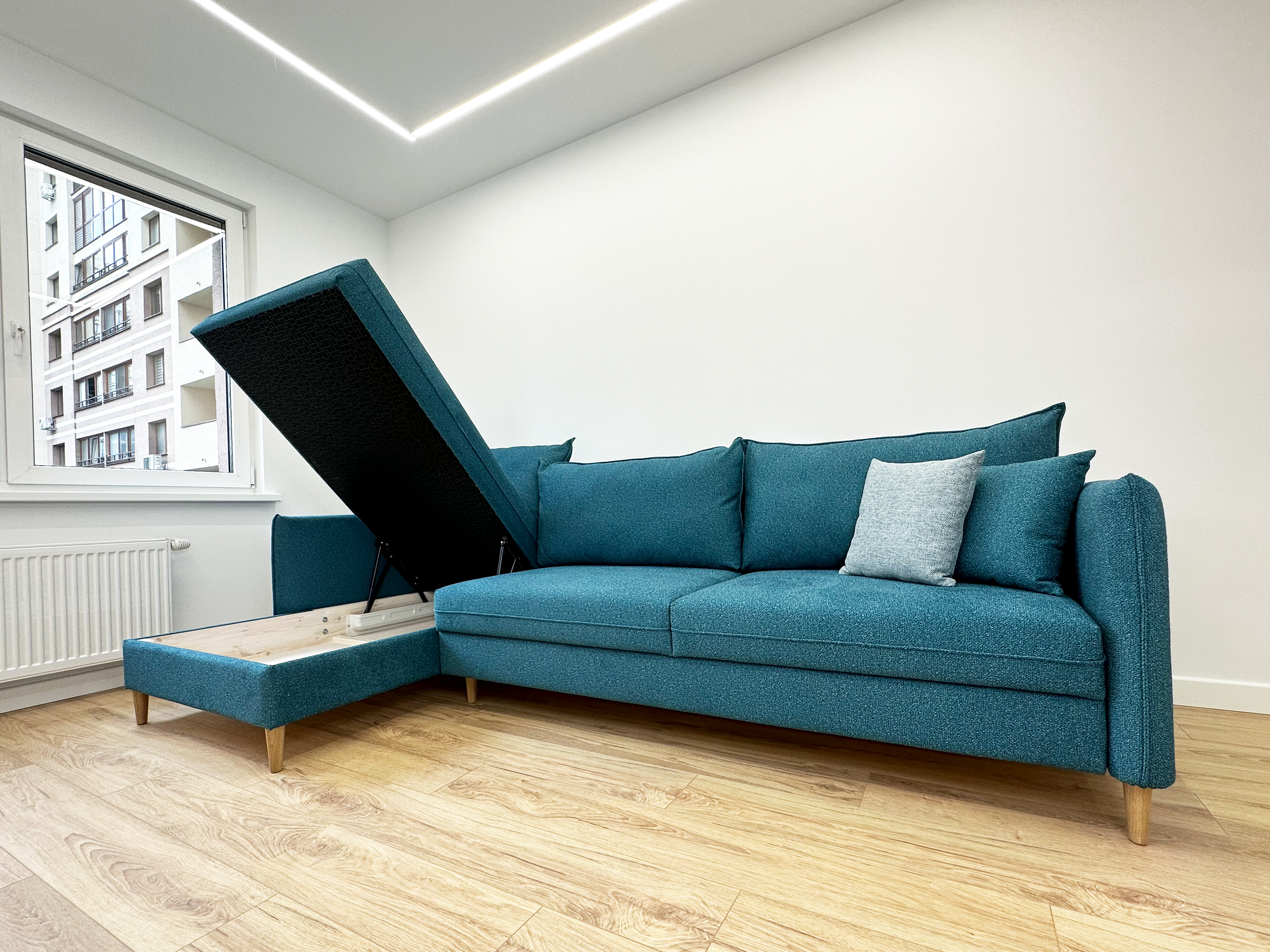 Диван-кровать Айва угловой в коллекции Барселона синего цвета — это идеальное сочетание комфорта и функциональности для вашего дома.