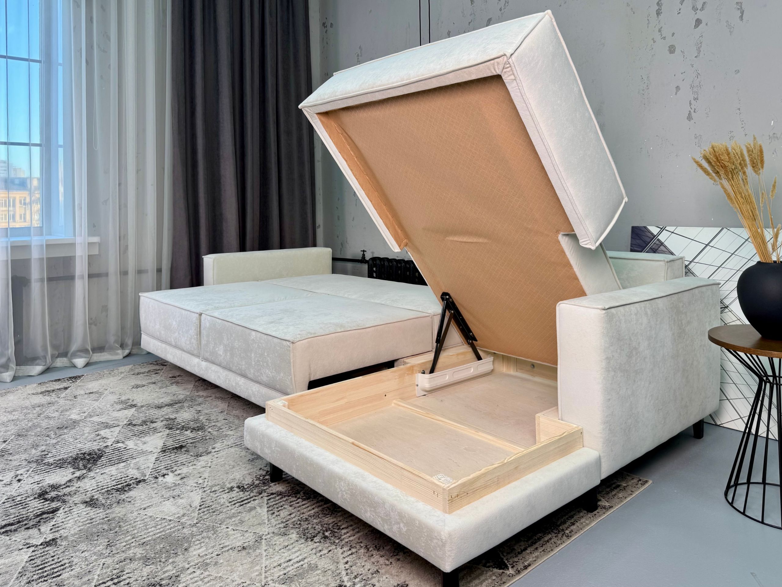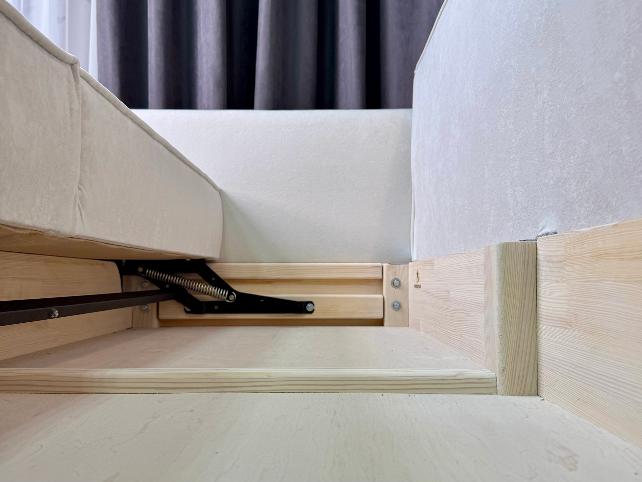 Подъемный механизм газ лифт позволяет легко поднять верхнюю часть дивана и получить доступ к нише для хранения.