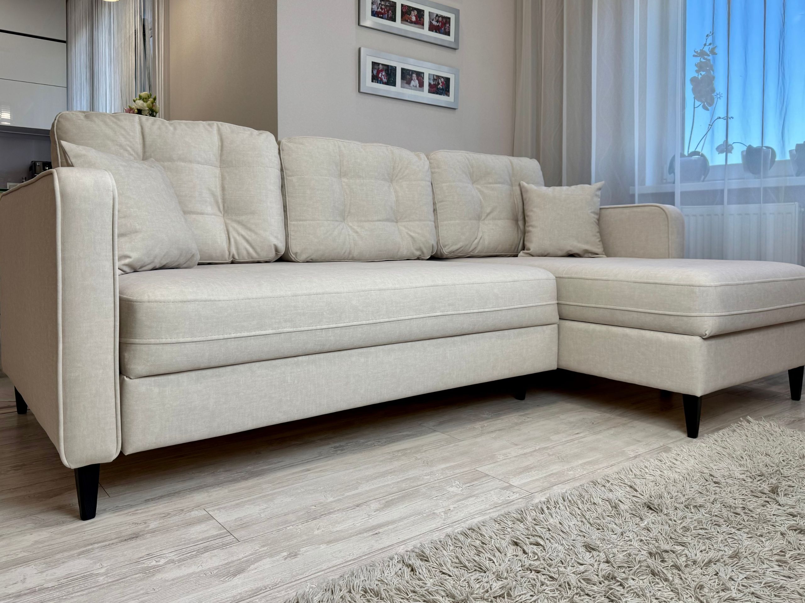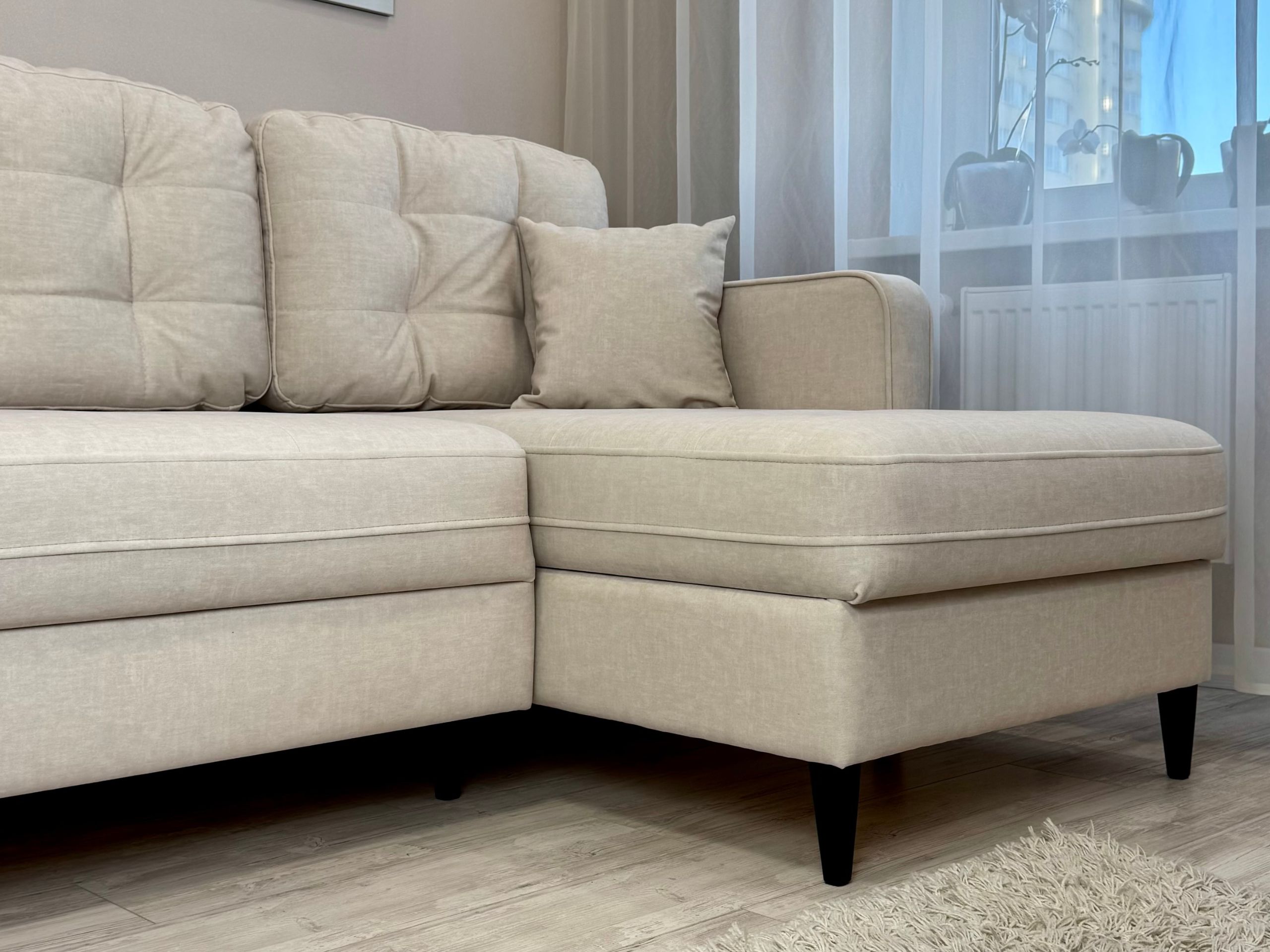 Диван-кровать Вернамо угловой в коллекции Омега в бежевом цвете: уют и стиль.
