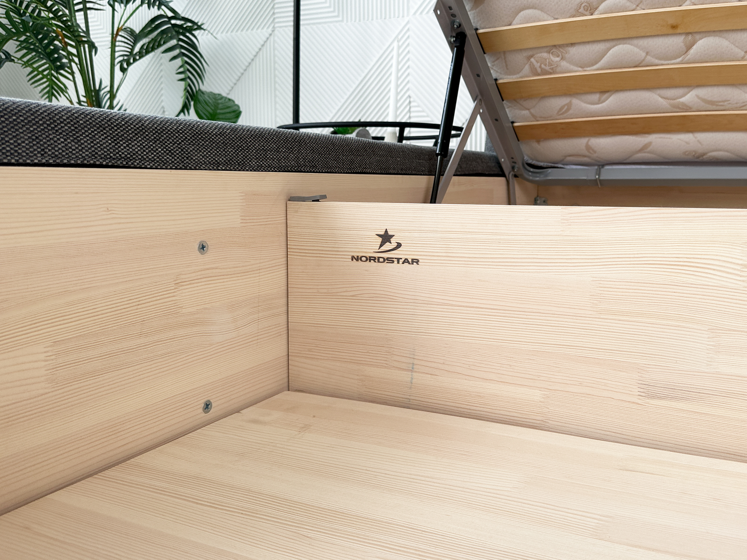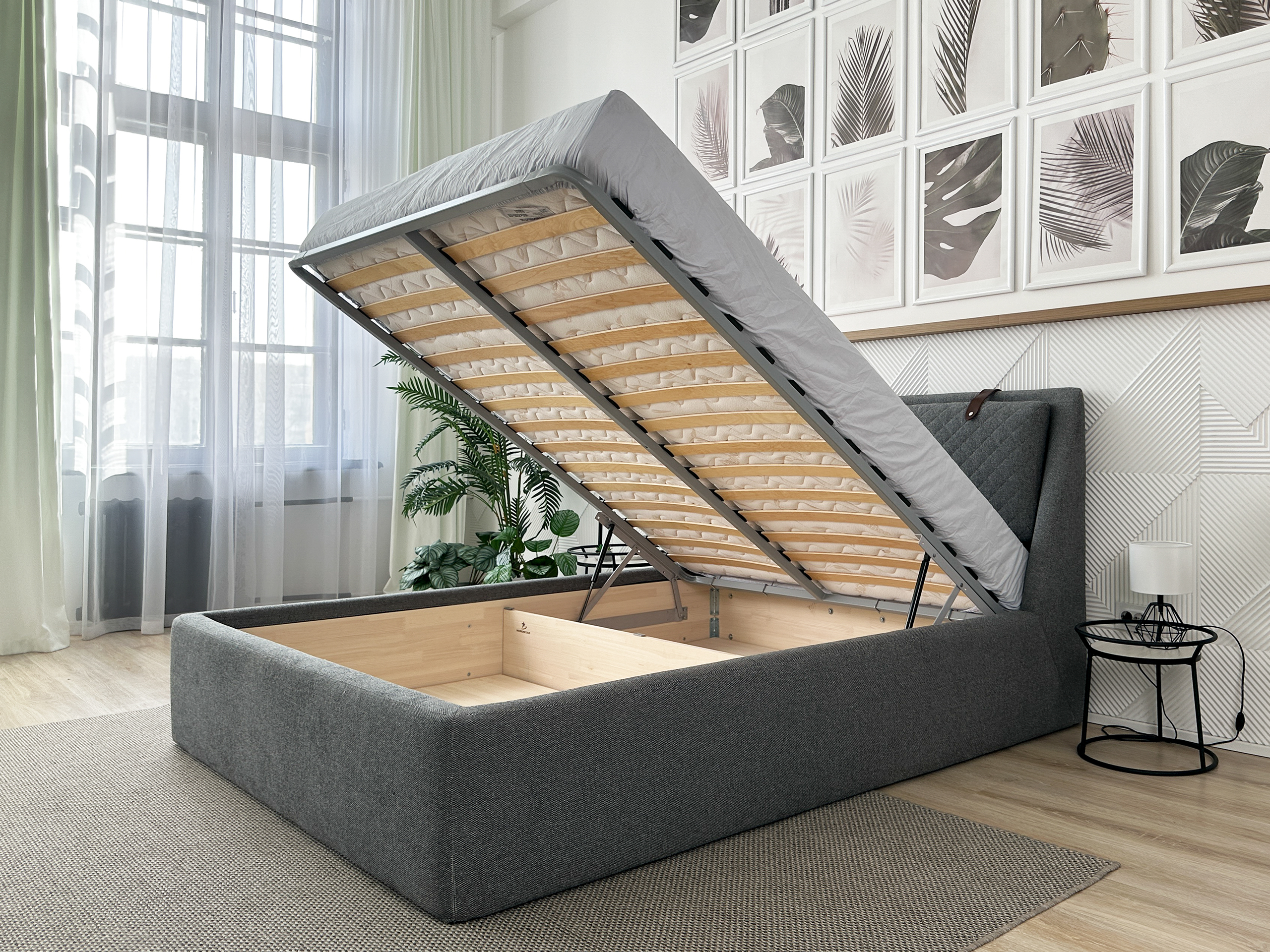 Кровать Бегна в классической серой рогожке – это отличное сочетание итальянского дизайна и белорусского премиального качества. Мягкое и уютное изголовье подарит комфортный отдых. Надежный и долговечный каркас из мебельного щита гарантирует срок службы более 10 лет. Роскошная ниша для хранения белья из мебельного щита, гладко отшлифована и пропитана пропиткой по дереву. Это защитит дерево от проявления смол со временем. Легкий аромат натурального дерева дополнит удовольствие от использования кровати.