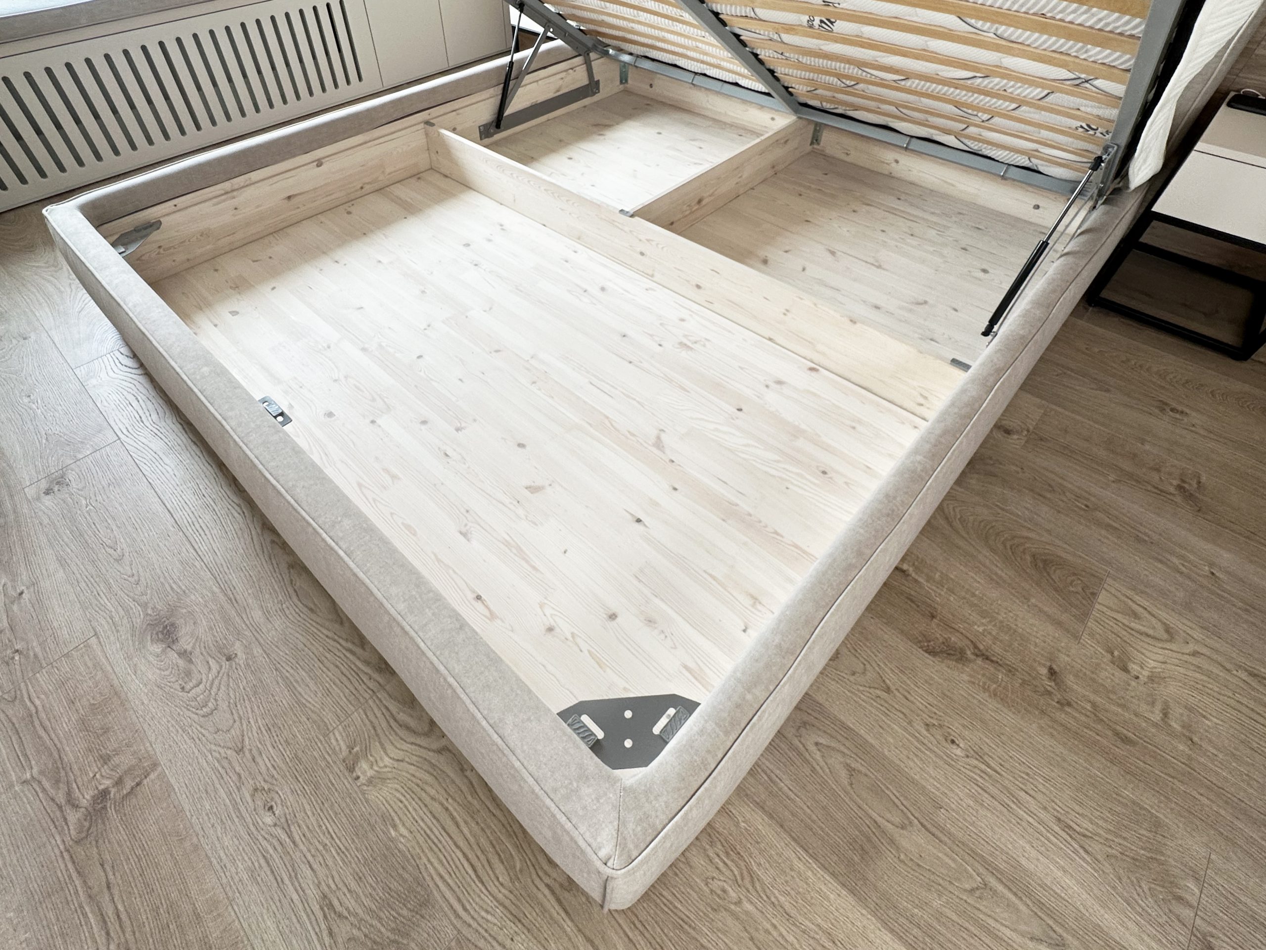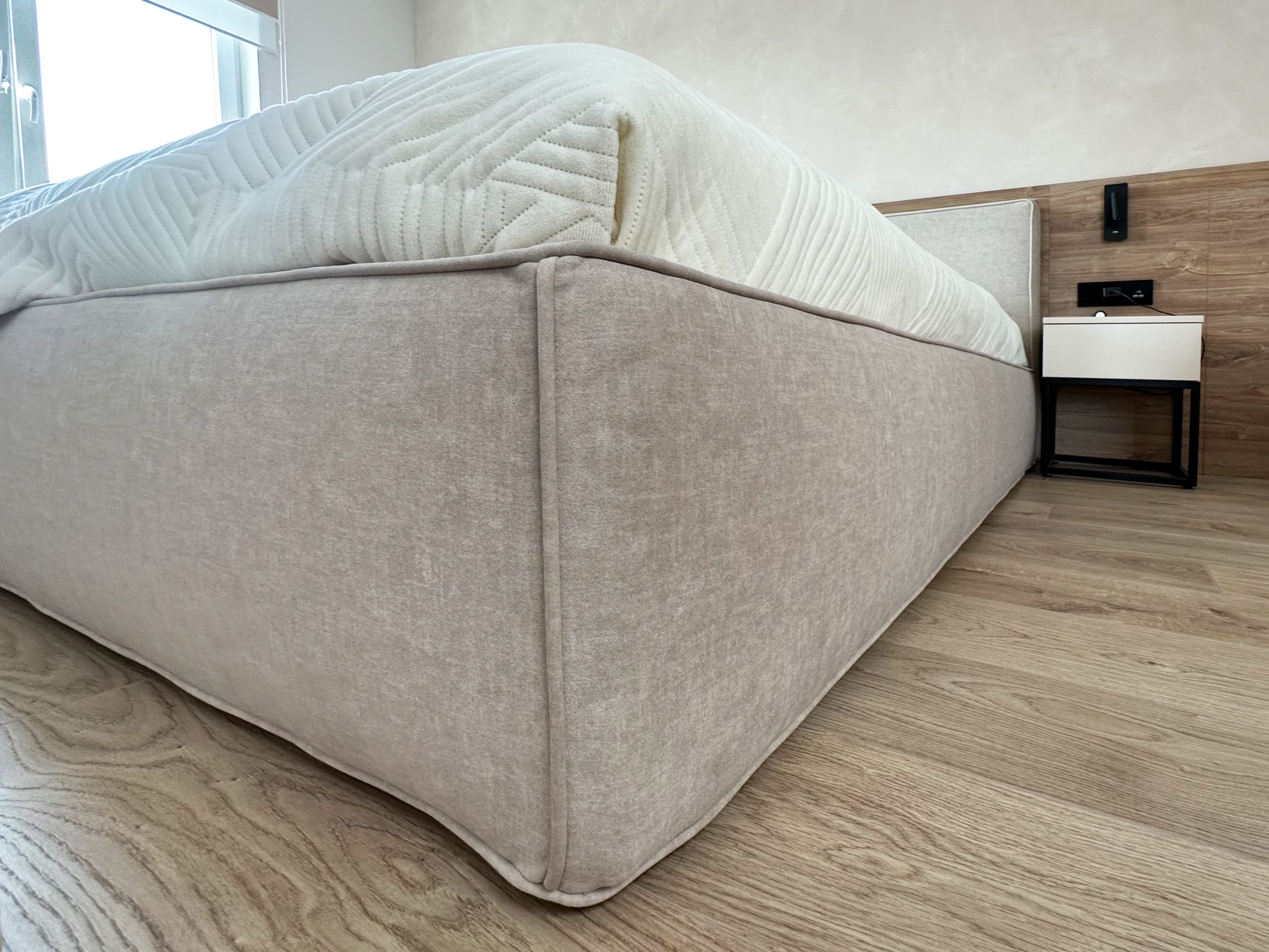 Кровать Видо — это идеальное решение для создания комфортной и стильной спальни. Она обладает мягким изголовьем, каркасом из натуральных материалов, удобной нишей из мебельного щита и функциональными особенностями, включая подъемный механизм и ортопедическое основание.